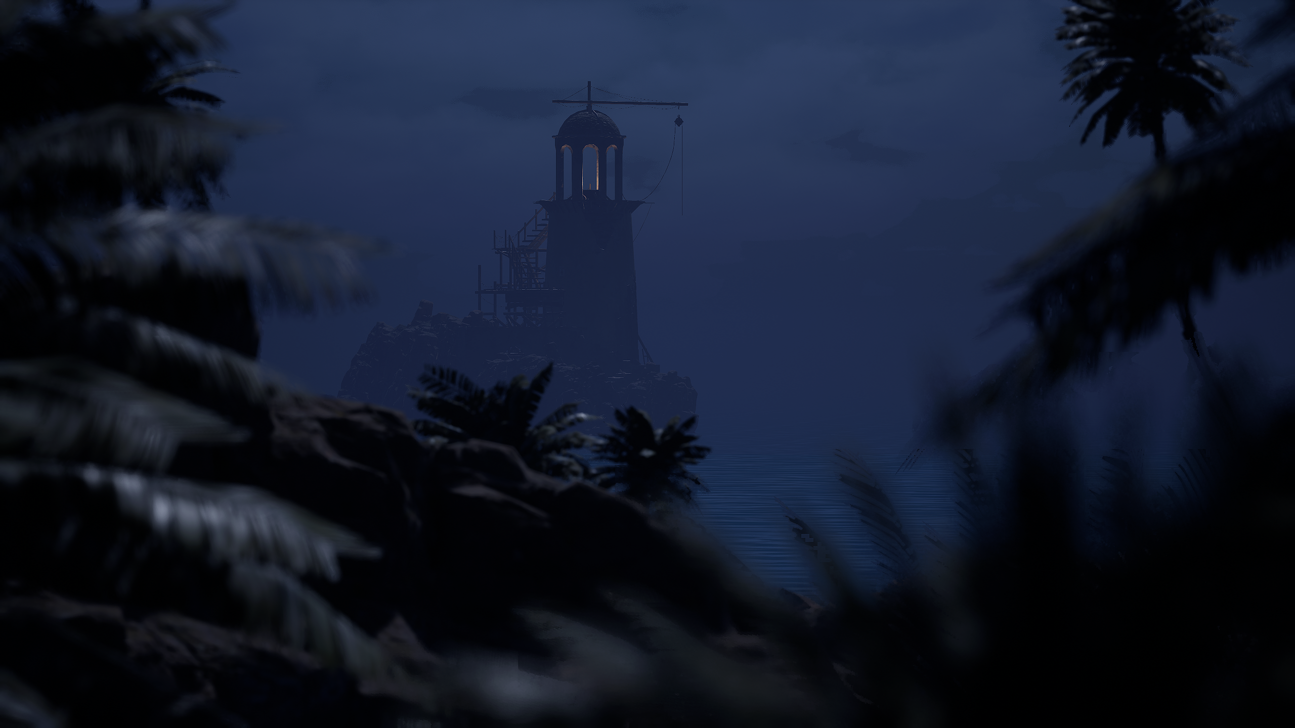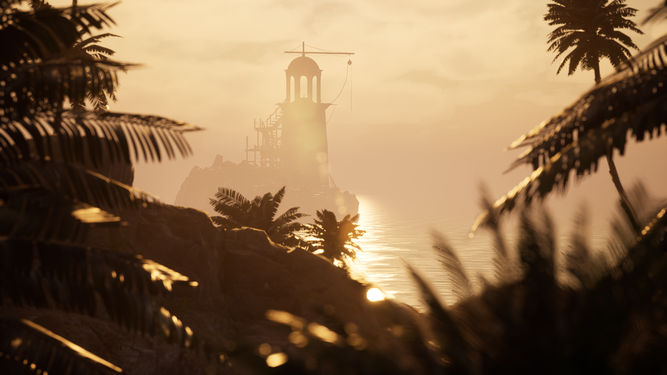 A quiet pirate lighthouse at sunset.